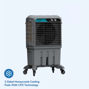Powerful 18 sq. m. air throw for faster cooling