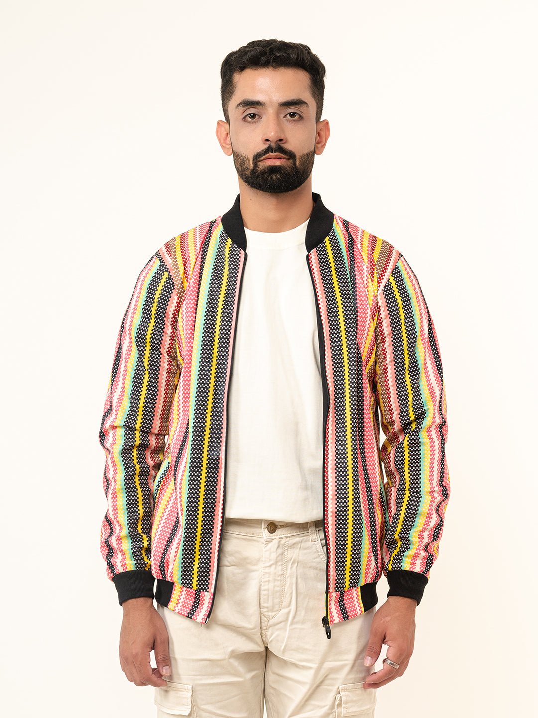For a cool winter look, go for the Multicolour Striped Velvet Jacket that keeps you comfortable along with giving a stylish look. PRODUCT DESCRIPTIONFull SleevesCottonSide Pocket Embroidered FABRIC: Velvet Colour: MulticolorFIT: Relaxed Fit Model Height: 5’10 Feet WASH CARE: Cold machine wash. For more details see the wash care label attached.