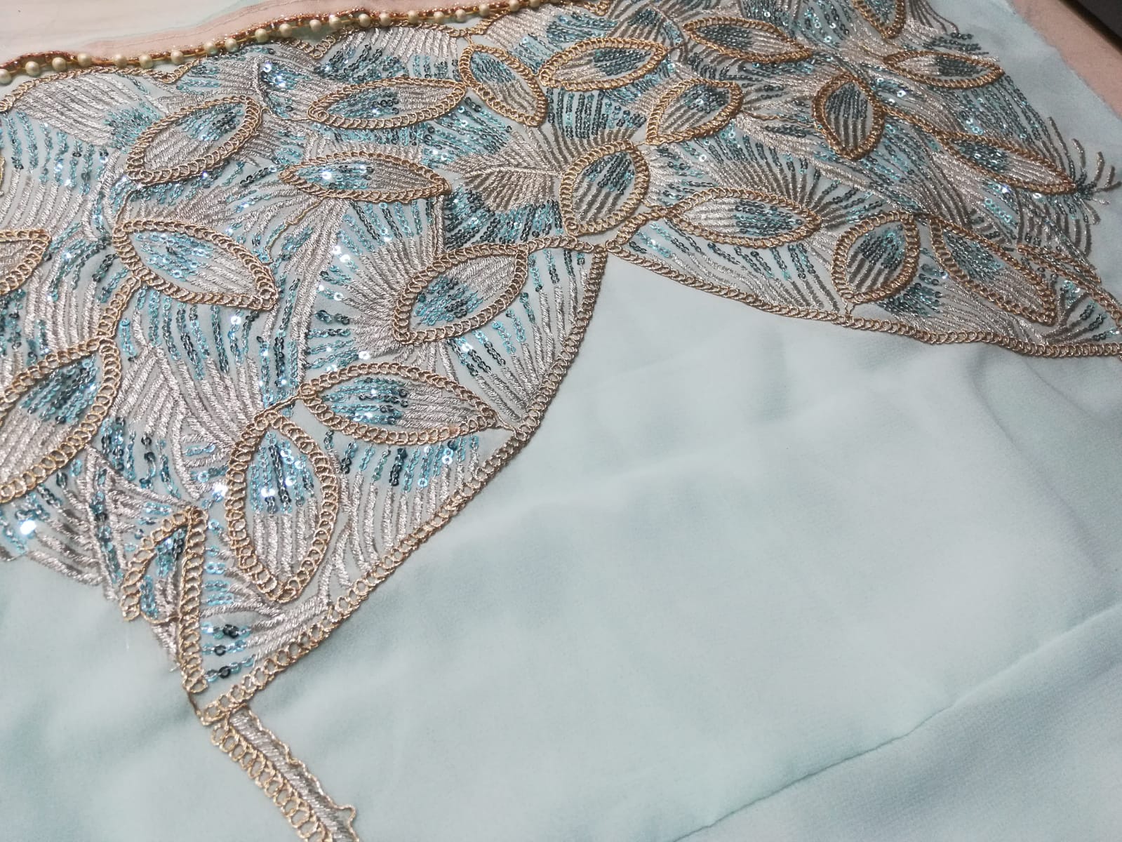 Work:- 3Mm Sequins Jari And Coding Dori Embroidery Work